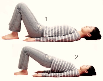 - 등을 대고 누워 무릎을 세운다.